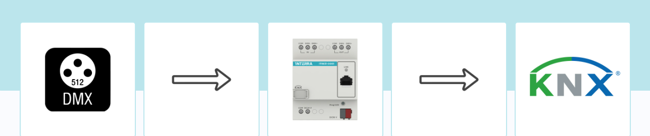 ITR831-0001 — Interra KNX — шлюз DMX поддерживает двустороннее управление и может записывать, воспроизводить и удалять программы DMX. Благодаря времени записи до 4 часов шлюз Interra KNX - DMX может широко использоваться для управления устройствами со встроенным портом протокола DMX для управления цветом светодиодов, такими как освещение компьютера, движущаяся фара, лазерный свет и т. д.