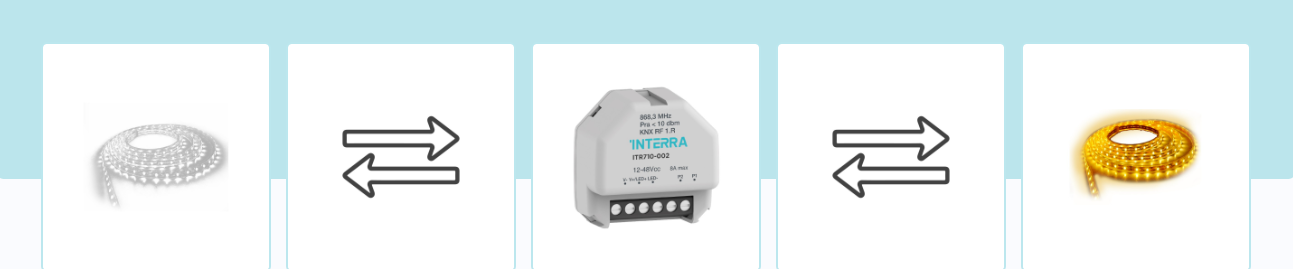 Беспроводной 1-канальный диммер для светодиодных лент Interra KNX RF S-Mode используется для одноцветных светодиодных лент низкого напряжения. Позволяет включать, выключать и затемнять светодиодные ленты. Это идеальное решение для использования в обычных установках без прокладки шинных кабелей KNX благодаря функциям двунаправленной радиочастотной связи KNX.